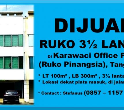 Dijual Ruko di kawasan Karawaci Office Park (Ruko Pinangsia) yang merupakan pertokoan yang disediakan Lippo Group sebagai pengembang Lippo Karawaci.