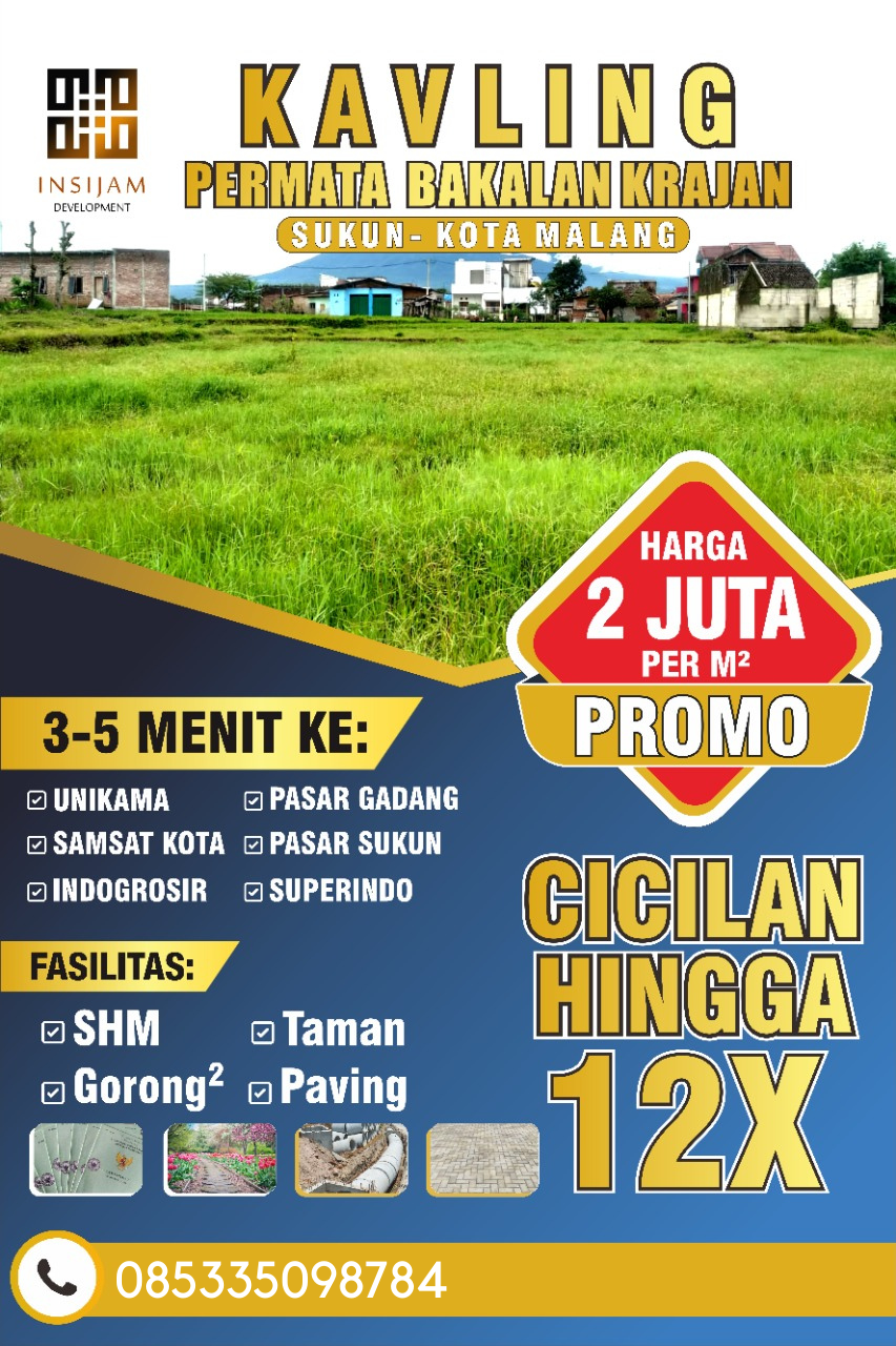 Tanah Kavling Siap Bangun di Sumberkradenan Pakis Malang 08-11MA. KAVLING EKSLUSIVE Jangan asal pilih kavling yang murah..Luas 70m2 Harga 90 Juta Lokasi dekat akses tol... Selengkapnya)