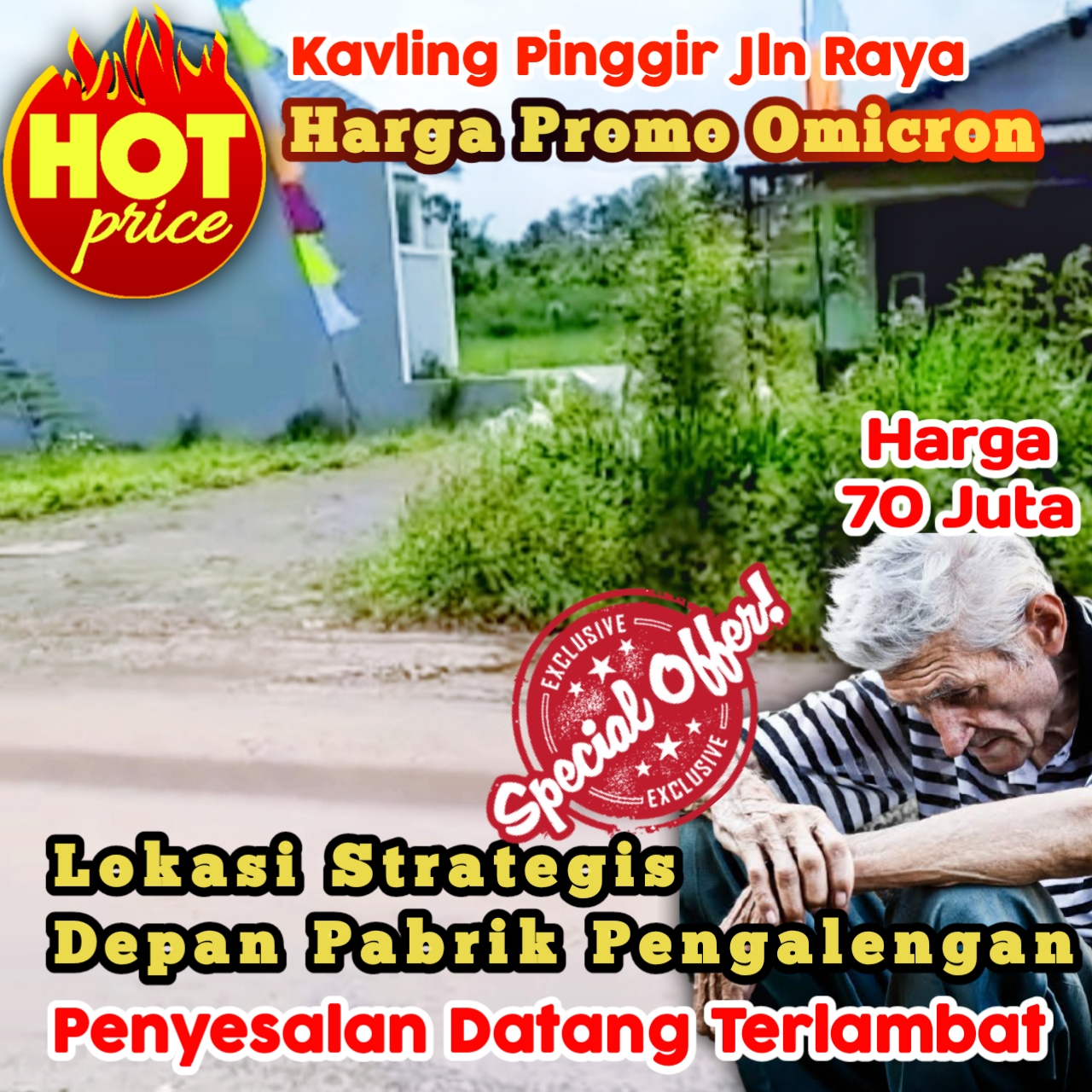 Tanah Kavling pinggir jalan depan pabrik pengemasan di Malang 70 juta siap air listrik dan fasum.